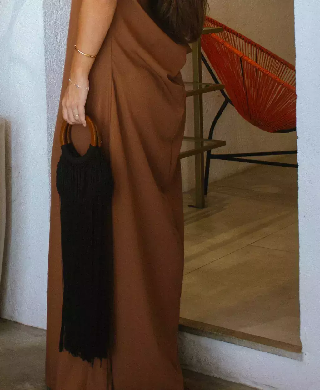 Para mulheres elegantes. A bag tropical é perfeita para compor looks fluidos e sofisticados. São 52cm de franjas por fio 100% viscose e o corpo da bolsa formado por fio 100% algodão que é responsável por deixá- lá macia e maleável, por isso é perfeita para colocar vários itens (celular, batom, óleo, chaves…). Não menos importante, sua alça em madeira permite que a bag possa remeter ao frescor da natureza, o designer arredondado é perfeito para combinar com acessórios modernos e vestidos leves. Sinta o fluir do movimento. Peça a sua!